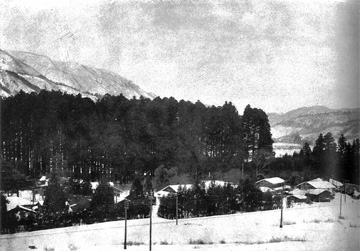 杉を主林木とし樹齢130-200年、多少広葉樹を混在する、面積25町余、人家266戸、耕地3町の防風に偉効あり