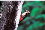 ※シラカバの丸太をマツの幹に取り付けるとアカゲラが巣穴をあける
