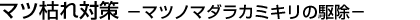 これまでの駆除方法は、被害マツをチップにする物理的な方法や薬剤を使って殺虫する化学的な方法が一般的でした。しかし最近は、環境になるべく負荷をかけない駆除方法が求められつつあり、
