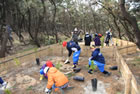 石川県加賀市 瀬越キャンプ場 加賀市立緑丘小学校の児童約40名他、総勢150名によりキャンプ場の背後にある丘陵地に植樹 |